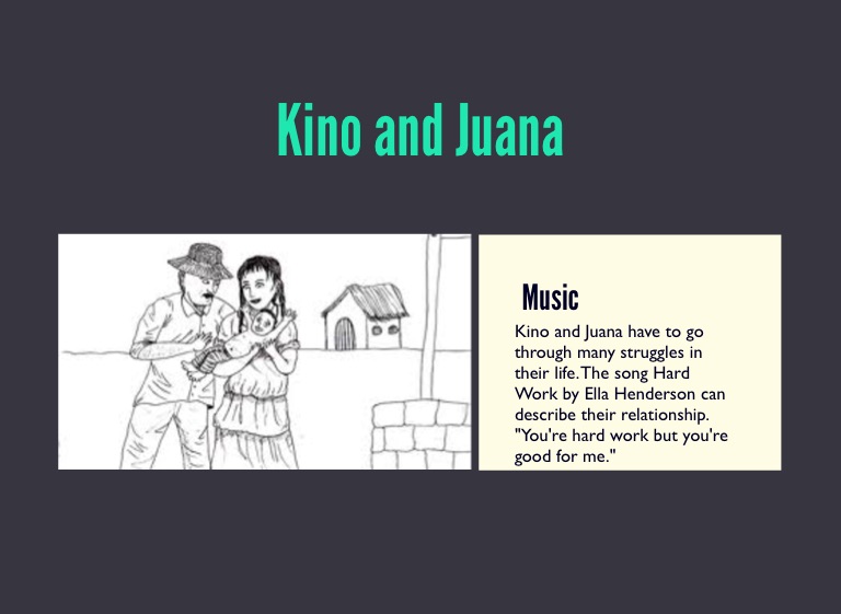Kino and Juana have to go through many struggles in their life. The song Hard Work by Ella Henderson can describe their relationship. "You're hard work but you're good for me."