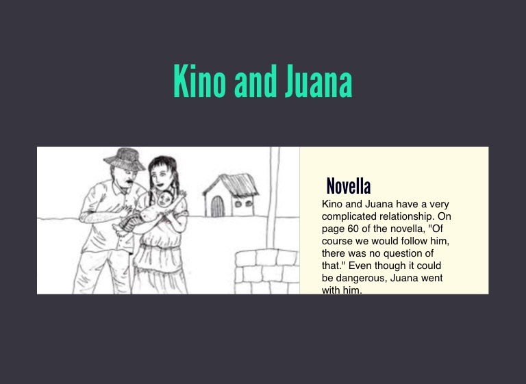 Kino and Juana have a very complicated relationship. On page 60 of the novella, "Of course we would follow him, there was no question of that." Even though it could be dangerous, Juana went with him.