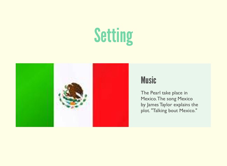 The Pearl take place in Mexico. The song Mexico by James Taylor explains the plot. "Talking bout Mexico."