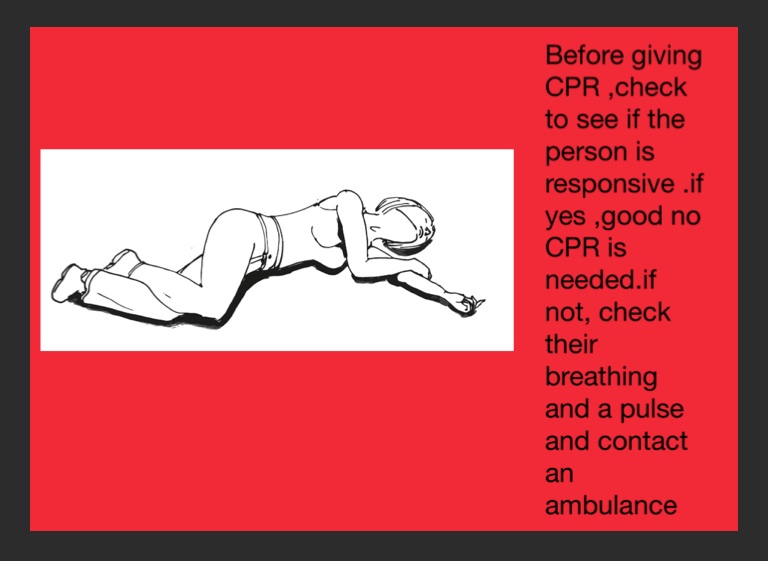 Before giving CPR ,check to see if the person is responsive .if yes ,good no CPR is needed.if not, check their breathing and a pulse and contact an ambulance