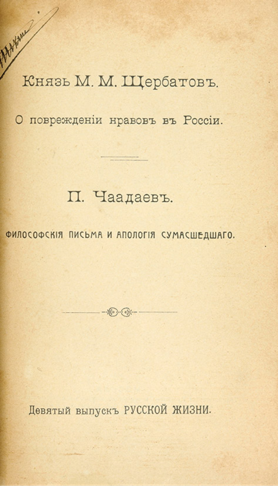 Наиболее резкое и полное выражение взглядов порицателей Екатерины II содержится в известной записке «О повреждении нравов в России» князяМ.М. Щербатова, служившего при дворе Екатерины II, историографа и публициста, человека образованного и патриота с твердыми убеждениями. Автор собрал в этом труде свои воспоминания, наблюдения и размышления о нравственной жизни высшего русского общества XVIII в., закончив нарисованную им мрачную картину словами: «...плачевное состояние, о коем токмо должно просить бога, чтоб лучшим царствованием сие зло истреблено было».
