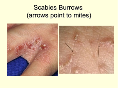 Symptoms will start within one to two days if you've had a scabies infection in the past.