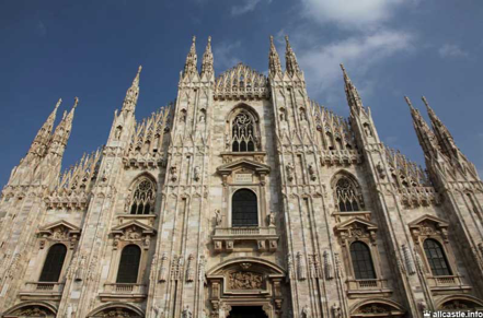 Міланський собор - найбільш значний пам'ятник готичного стилю в Італії , побудований в стилі полум'яніючої готики з білого мармуру.На тому місці, де стали зводити Дуомо, в доісторичні часи стояло кельтське святилище, за римлян храм Мінерви, потім церква Санта-Текла, побудована в IV столітті і зруйнована в VI, а з VII століття - церква Санта-Марія-Маджоре, яку знесли , коли стали розчищати місце для собора.В 1418 собор був освячений папою Мартіном V, але залишався незакінченим до XIX в.В результаті більш ніж п'ятивікового будівництва (майже 600 років) собор поєднав багато рис архітектурних стилів, від бароко до неоготики.