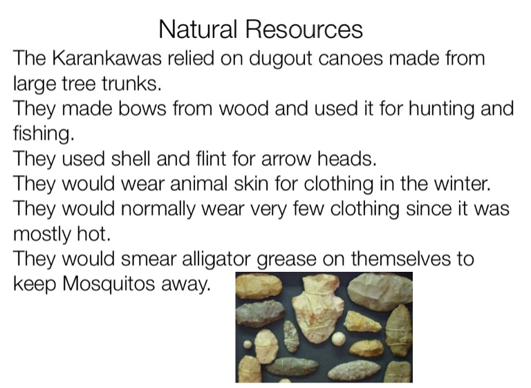 The Karankawas relied on dugout canoes made from large tree trunks.