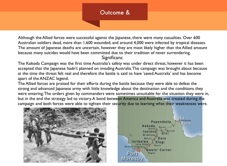 The Allied forces are praised for their efforts during the battle because they were able to defeat the strong and advanced Japanese army with little knowledge about the destination and the conditions they were entering. The orders given by commanders were sometimes unsuitable for the situation they were in, but in the end the strategy led to victory. A bond between America and Australia was created during the campaign and both forces were able to tighten their security due to learning what their weaknesses were.