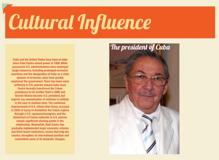 Cuba and the United States have been at odds since Fidel Castro seized power in 1959. While successive U.S. administrations have employed tough measures, including prolonged economic sanctions and the designation of Cuba as a state sponsor of terrorism, none have greatly weakened the government. There has been some softening in U.S. policies toward Cuba since Castro formally transferred the Cuban presidency to his brother Raúl in 2008 and Barack Obama became U.S. president, but experts say normalization of relations is unlikely in the near to medium term. The continued imprisonment of U.S. citizen Alan Gross, accused in 2009 of trying to destabilize the Cuban regime through a U.S.-sponsored program, and the detainment of Cuban nationals in U.S. prisons remain significant sticking points in the relationship. Meanwhile, Raúl Castro has gradually implemented major economic reforms and lifted travel restrictions, moves that help the country strengthen its international position and consolidate some of its domestic changes.
