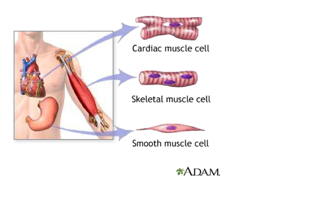 There are three kinds of muscles in your body. Smooth muscle is found only in the digestive tract and in the blood vessels, cardiac muscles is found only in your heart,skeletal muscles is attached to your bones to help move