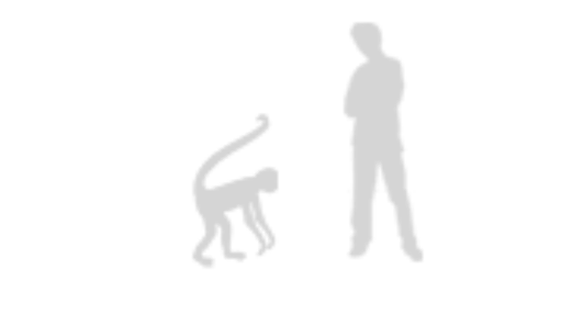 This picture shows the monkey standing next to a man.