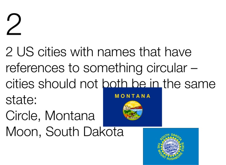 2 US cities with names that have references to something circular – cities should not both be in the same state:
