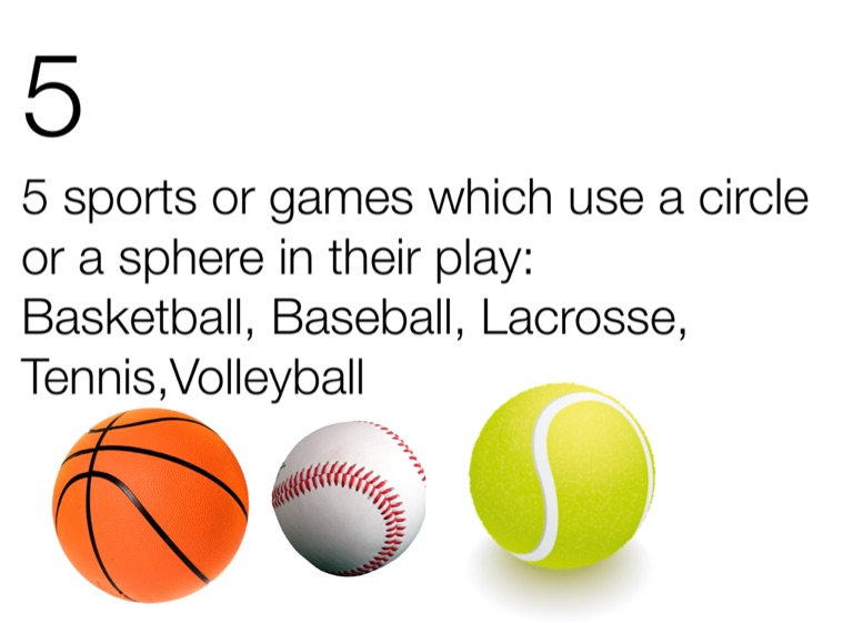 5 sports or games which use a circle or a sphere in their play: