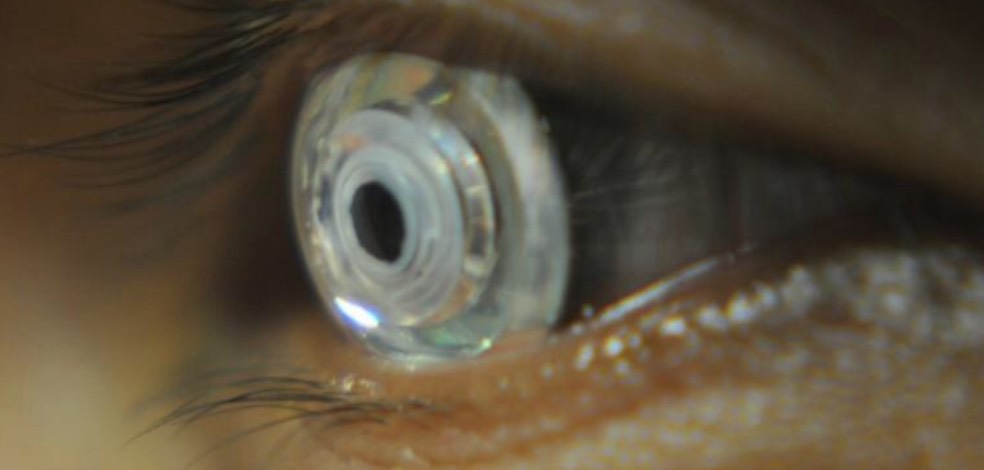 As you can see the cornea is real slim and not bulky and fits to any size eye & That's what it looks like when you turn it off when you are done using it .