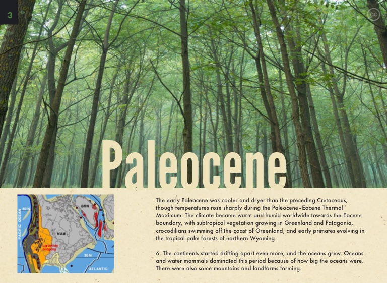 6. The continents started drifting apart even more, and the oceans grew. Oceans and water mammals dominated this period because of how big the oceans were. There were also some mountains and landforms forming.