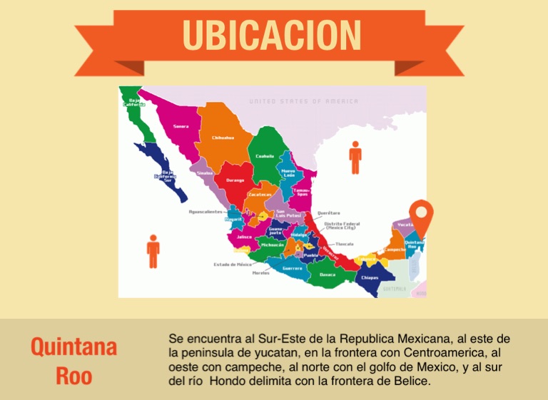 Se encuentra al Sur-Este de la Republica Mexicana, al este de la peninsula de yucatan, en la frontera con Centroamerica, al oeste con campeche, al norte con el golfo de Mexico, y al sur del río Hondo delimita con la frontera de Belice.