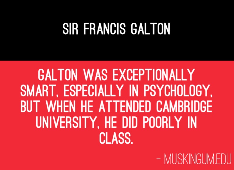 Galton was exceptionally smart, especially in psychology, but when he attended Cambridge university, he did poorly in class.