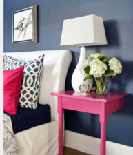 Compared to the night stand the arrangement is in scale. If the flower arrangement were bigger it would have over filled the night stands.