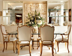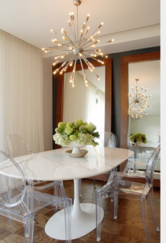 Compared to the table the arrangement is in scale. The flowers fill up enough space on the big table.