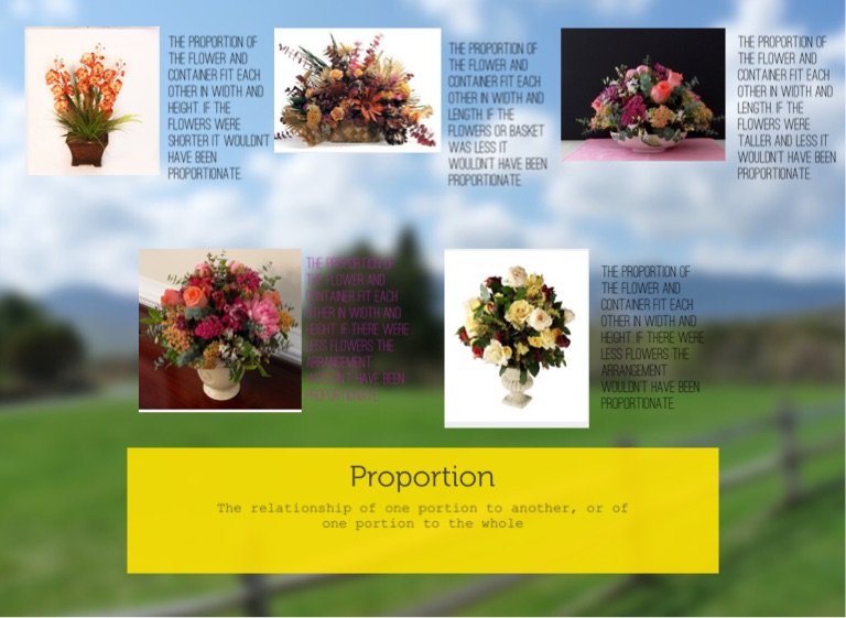 The proportion of the flower and container fit each other in width and length. If the flowers or basket was less it wouldn't have been proportionate.