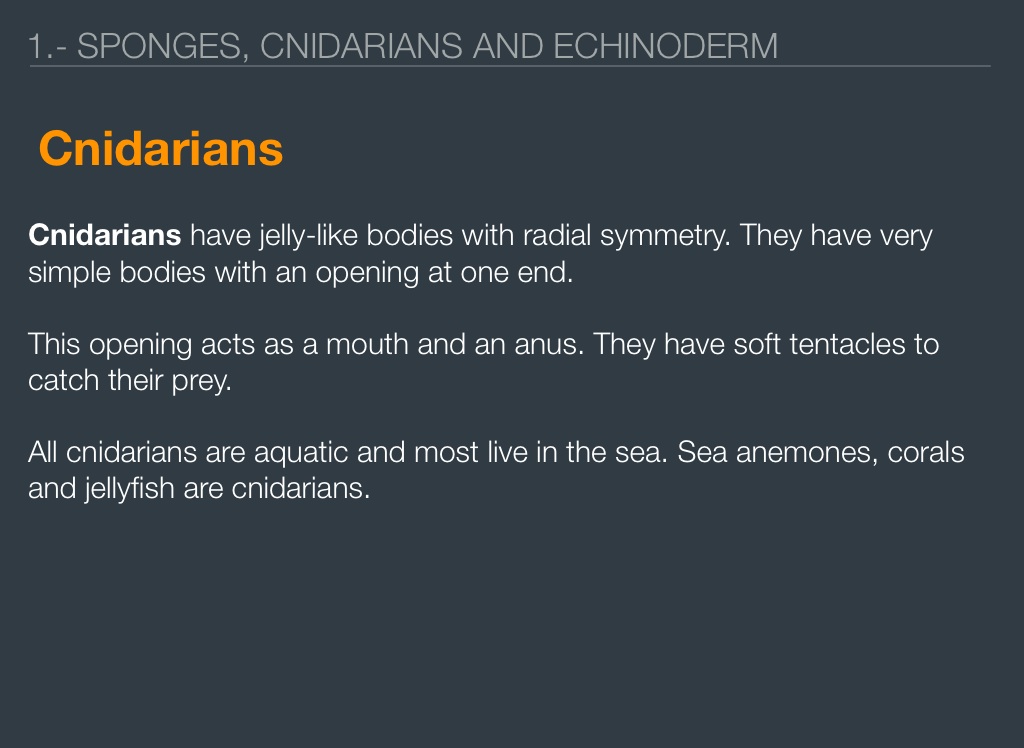 1.- SPONGES, CNIDARIANS AND ECHINODERM