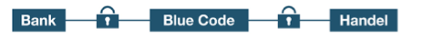 Blue Code agiert als anonyme Schnittstelle zwischen Bank und Händler. Es werden weder vertrauliche Daten gespeichert noch übertragen.