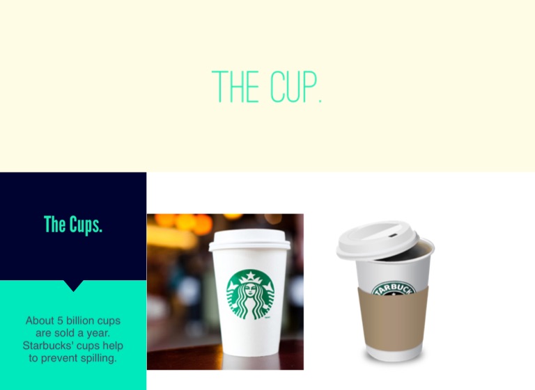 About 5 billion cups are sold a year. Starbucks' cups help to prevent spilling.