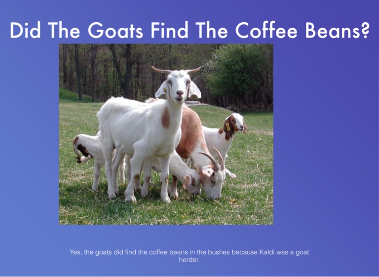 Yes, the goats did find the coffee beans in the bushes because Kaldi was a goat herder.