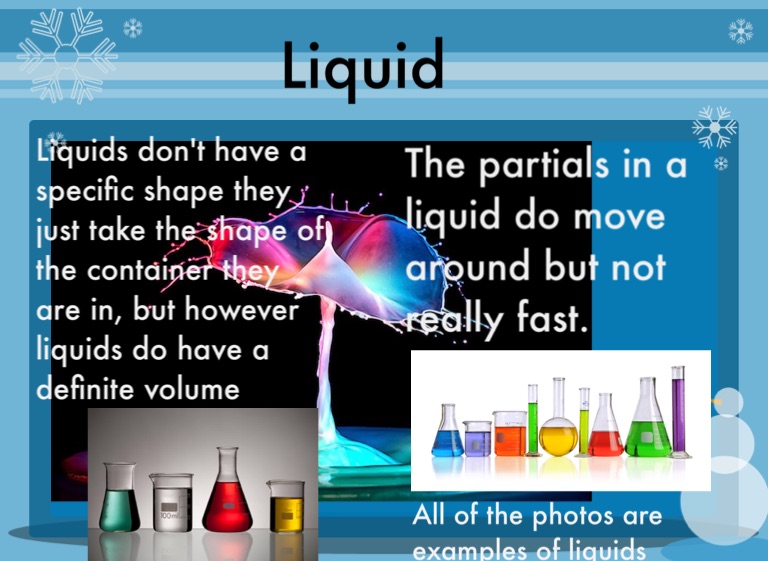 Liquids don't have a specific shape they just take the shape of the container they are in, but however liquids do have a definite volume