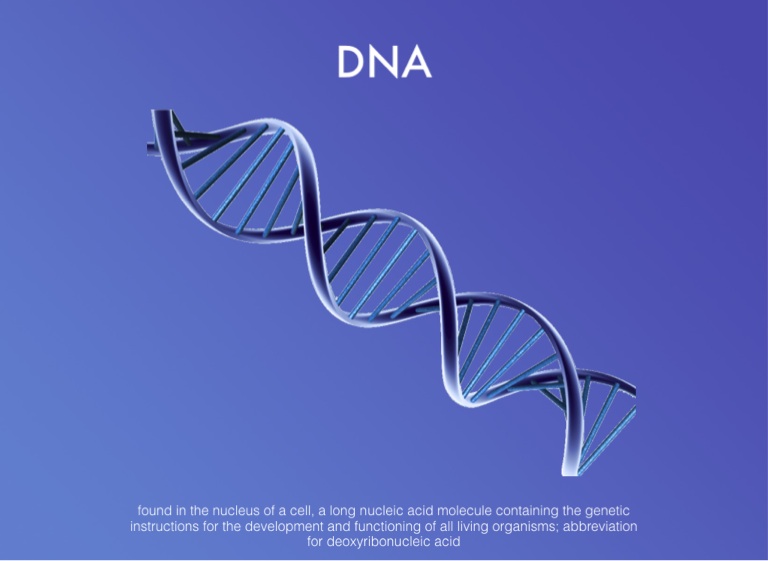 found in the nucleus of a cell, a long nucleic acid molecule containing the genetic instructions for the development and functioning of all living organisms; abbreviation for deoxyribonucleic acid