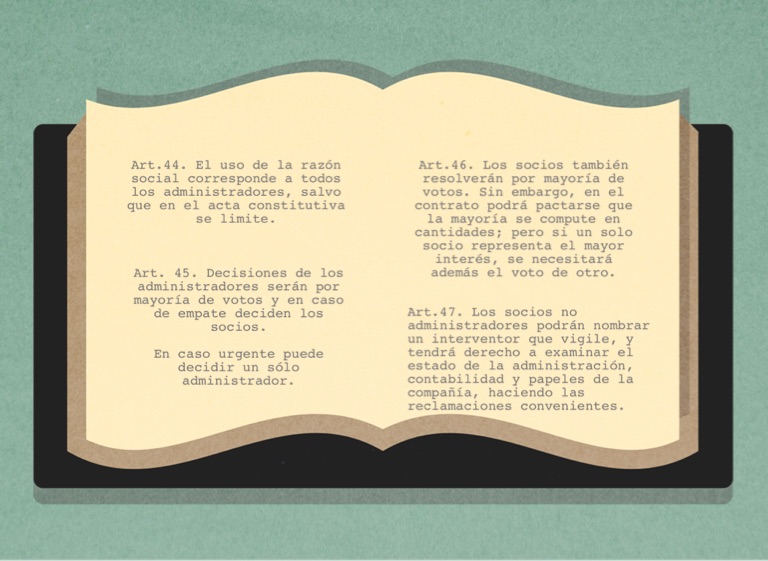 Art. 45. Decisiones de los administradores serán por mayoría de votos y en caso de empate deciden los socios.
