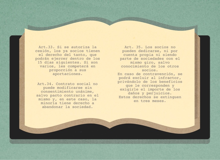 Art.34. Contrato social no puede modificarse sin consentimiento unánime, salvo pacto contrario en el mismo y, en este caso, la minoría tiene derecho a abandonar la sociedad.