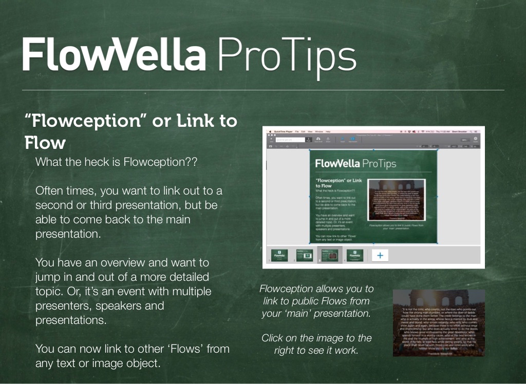 Flowception allows you to link to public Flows from your ‘main’ presentation.