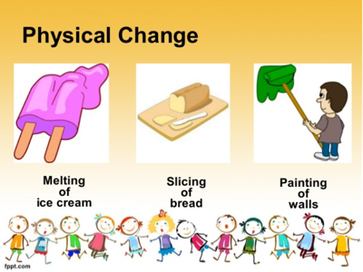 First of all a chemical change in matter that for one can be reversed and two isn't changed on the molecular level. An example of a physical change is cutting paper. You might've separated it, but it's still paper. More examples of a physical change is in the picture down below.