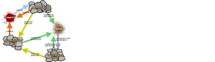 The rock cycle is the change in the form of rock. The different forms are igneous, metamorphic and sedimentary. To summarize what the rock cycle does, it can either expand land or erode some land.