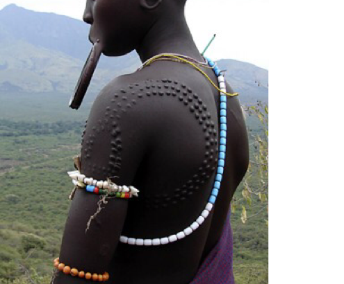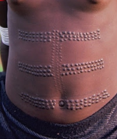 Women can also add beautification marks. These marks are made with large thorns cutting and scarring the skin.