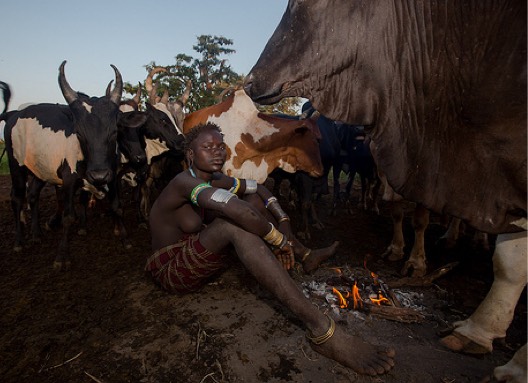 It is also custom for a man who is single to pick out his favorite single women by identifying her with her lip plate and paying her father for her marriage with cows or any type of livestock he owns. The men usually protect their herd with guns.
