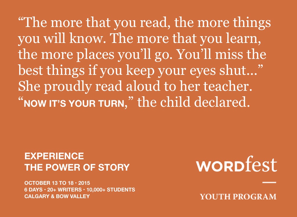 Wordfest Youth brings writers from across Canada and around the world in contact with young readers at fun, educational events that promote a love of reading and a deeper appreciation of the written word. The 20th annual Wordfest runs October 13-18, 2015, in Calgary and the Bow Valley.