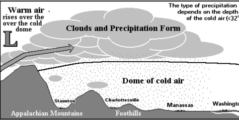 For a blizzard to form, warm air must rise over cold air. The wind will pull cold air towards the equator and bring warm air towards the poles from the equator. When the two airs are bought together they create a front and precipitation occurs.