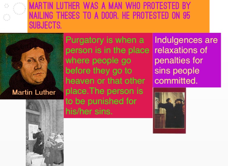 Martin Luther was a man who protested by nailing theses to a door. HE protested on 95 subjects.