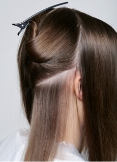 -pull the wide teeth of a comb across scalp where you want the section to be