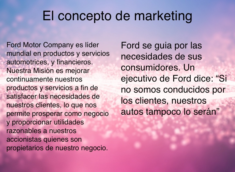 Ford se guia por las necesidades de sus consumidores. Un ejecutivo de Ford dice: “Si no somos conducidos por los clientes, nuestros autos tampoco lo serán”