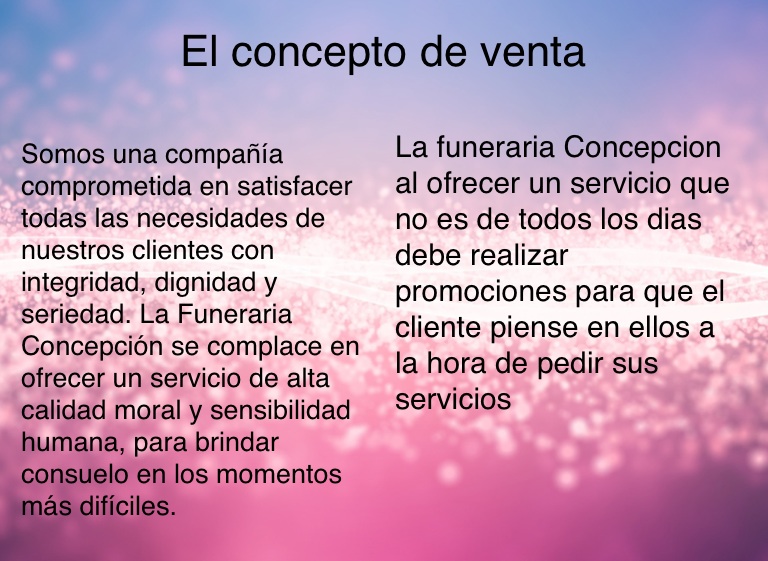 La funeraria Concepcion al ofrecer un servicio que no es de todos los dias debe realizar promociones para que el cliente piense en ellos a la hora de pedir sus servicios