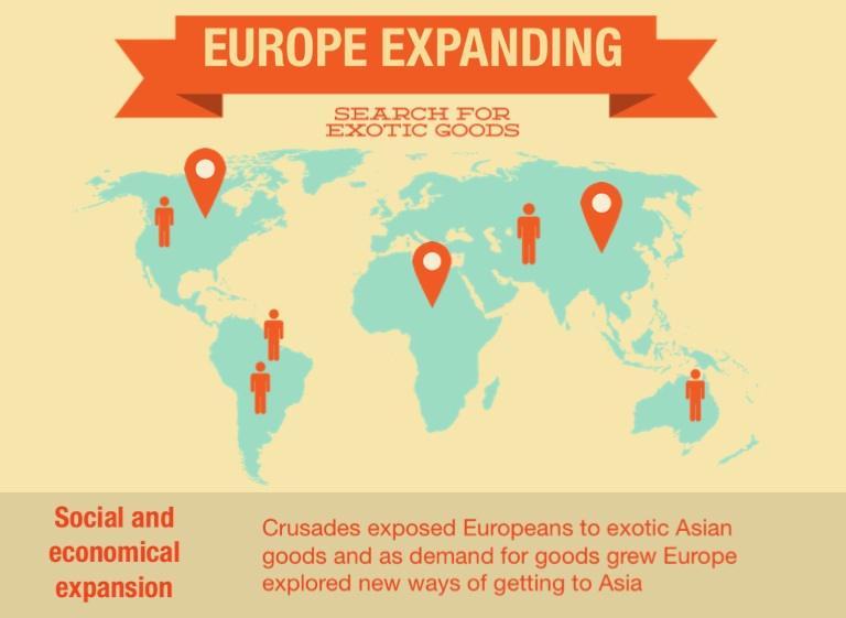 Crusades exposed Europeans to exotic Asian goods and as demand for goods grew Europe explored new ways of getting to Asia