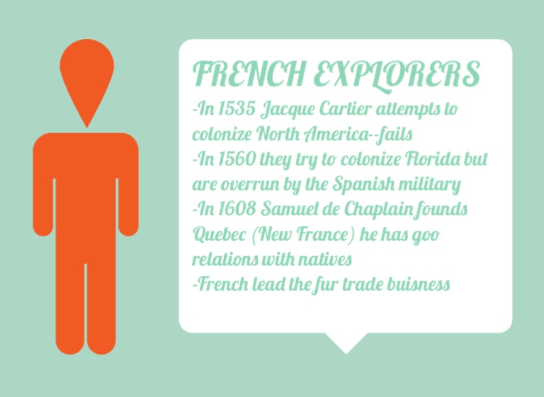 -In 1608 Samuel de Chaplain founds Quebec (New France) he has goo relations with natives