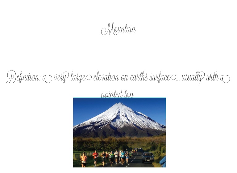 Definition: a very large elevation on earths surface... usually with a pointed top.
