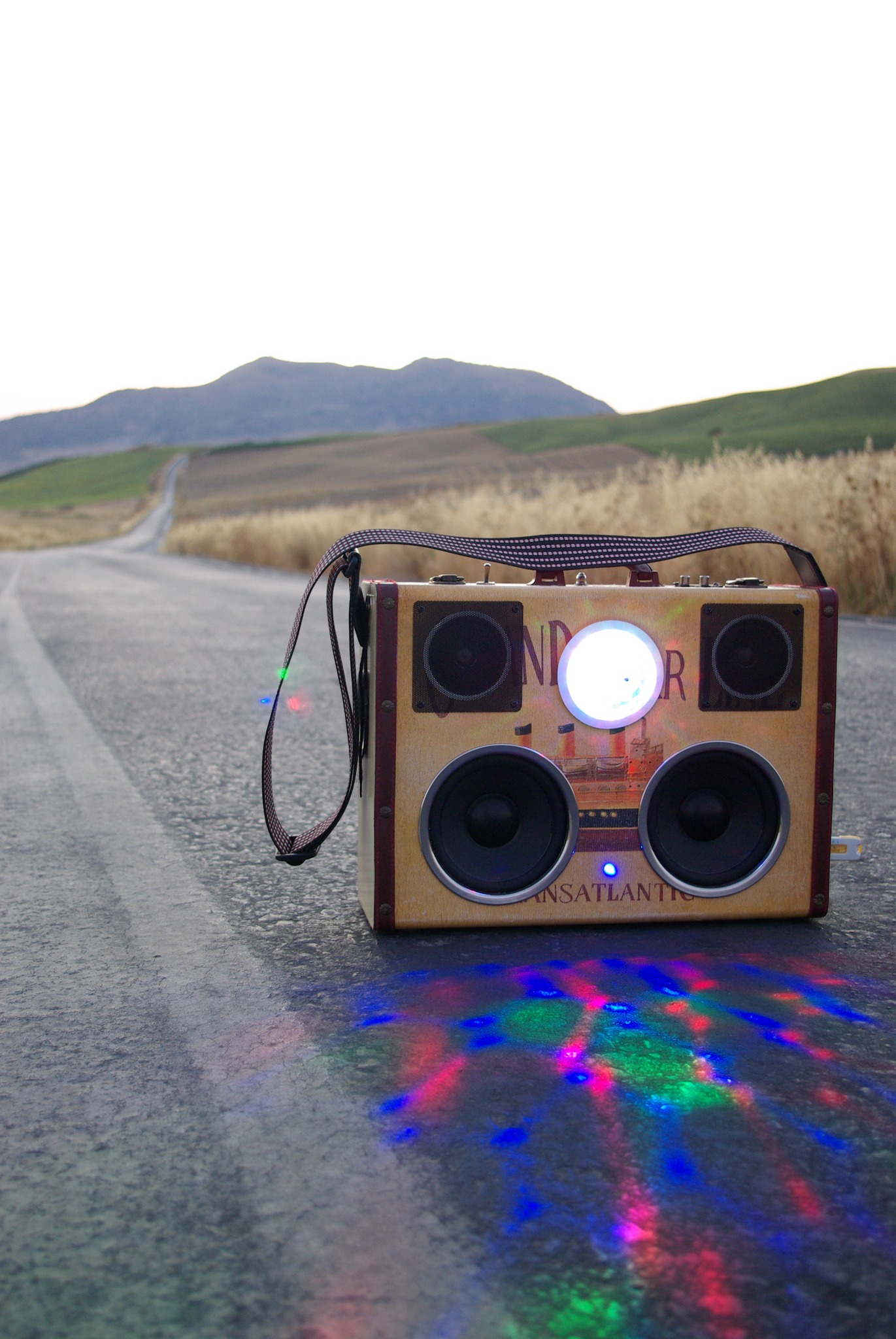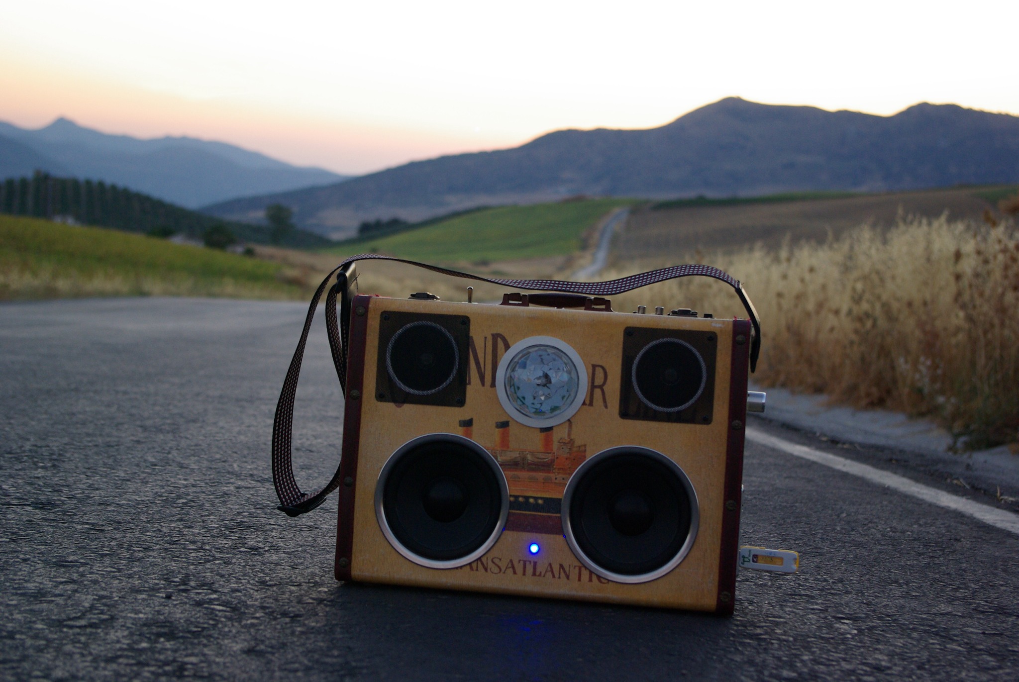 BOOMmarg son equipos de sonido portátiles montados en maletas vintage. Cuantas con conexiones bluetooth, lector de tarjetas SD, lector de Pendrive USB para archivos mp3, radio FM, entrada auxiliar, baterías de litio, efectos luminosos para fiestas y eventos, correas de transporte.