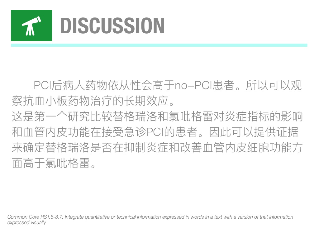 这是第一个研究比较替格瑞洛和氯吡格雷对炎症指标的影响和血管内皮功能在接受急诊PCI的患者。因此可以提供证据来确定替格瑞洛是否在抑制炎症和改善血管内皮细胞功能方面高于氯吡格雷。