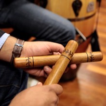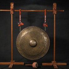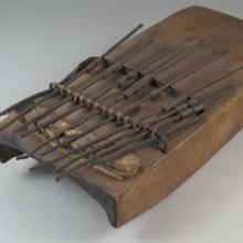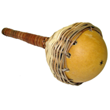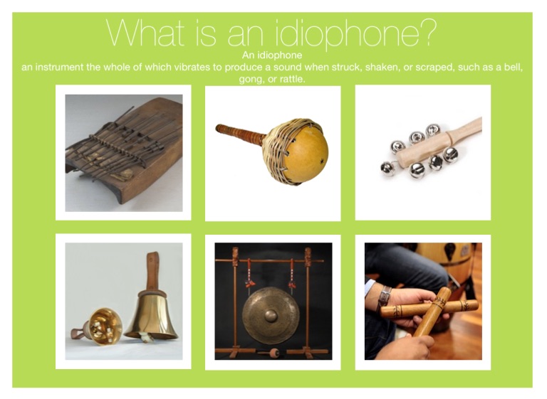 an instrument the whole of which vibrates to produce a sound when struck, shaken, or scraped, such as a bell, gong, or rattle.