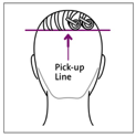 ▪️Create curls with an open center; the size of the center depends on the desired result. Clip each curl at the scalpwith a clippie on the scalp, with the direction of the curl standing up and away from the scalp.