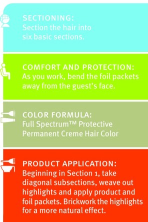 ✔️Front right lower section, take diagonal subsection, working w/natural hairline, weave and alternate highlights, continue towards occipital