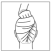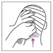 ✔️Transfer hair to right hand. Hold @ about middle of its length, straight out toward you w/fingers of right hand pointed down & toward nape.