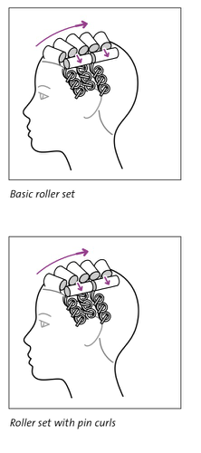 Note: If the hair is not totally dry on the rollers, the set will relax too much. A set that is completely dry shouldlast until the next shampoo.